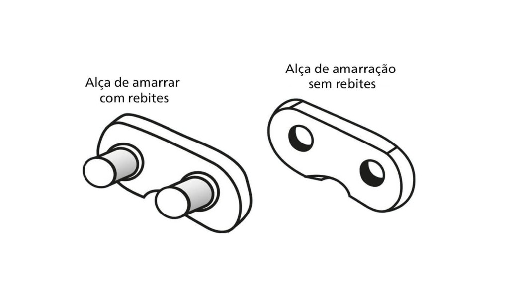 O elo de união, constituído por duas partes, une o elo de ação e o elo de corte. Rebites especiais garantem a possibilidade de movimentação da junta.