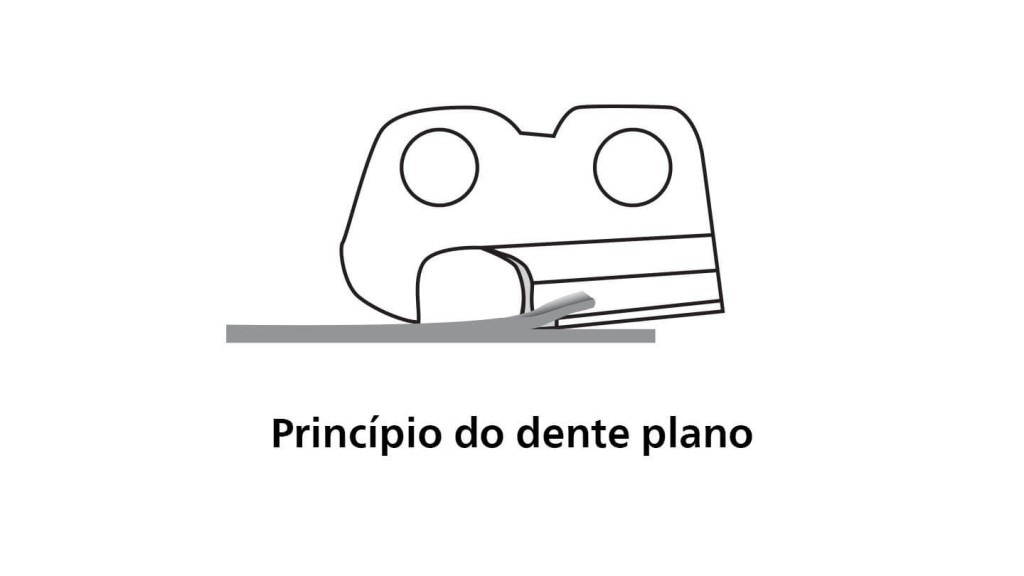 A corrente de uma motosserra funciona de acordo com o princípio do dente de plaina. Os cavacos são literalmente "aplainados" do material