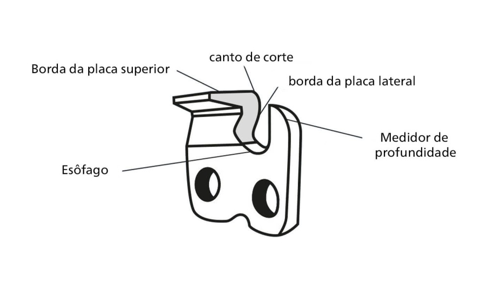 O medidor de profundidade está localizado na frente do dente de corte e limita a profundidade da penetração do dente na madeira.