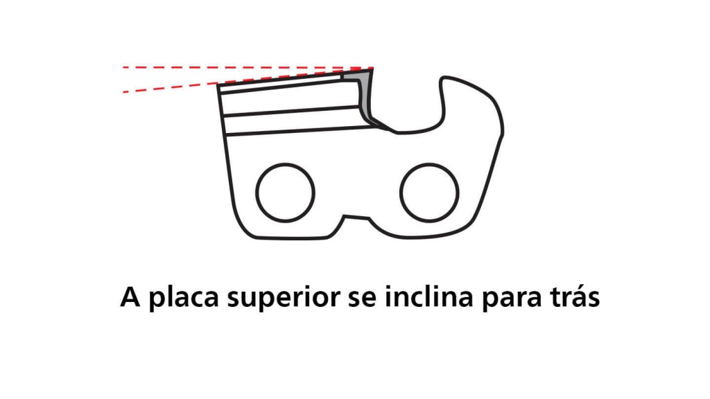 Os dentes de corte à direita e à esquerda são dispostos na direção de execução da corrente. Devido à sua geometria e ao chamado ângulo de incidência (a placa superior cai em direção à parte traseira e afunila no sentido da largura), o dente de corte penetra no material em si. Isso também acontece devido ao peso da corrente da motosserra e do jogo de corte e ao movimento da corrente de motosserra para frente.