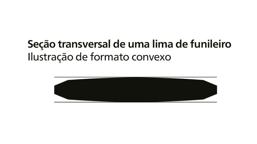 Esta forma especial de seção transversal impede que os bordos da lima toquem na peça durante o trabalho e originem riscos .